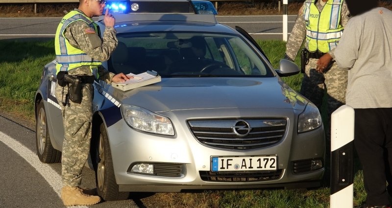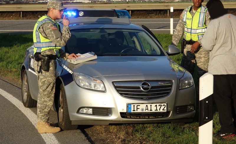Kurz darauf wurden alle Kräfte in Richting Erbenheim-Airbase entsandt. Dort befand sich die eigentliche Einsatzstelle, ein PKW eines US-Bürgers fuhr aus ungeklärter Ursache in der Ausfahrt in einen Busch, der PKW wurde an der Seite stark beschädigt, prallte gegen einen Baum. Der Fahrer wurde leicht Verletzt. Die Polizei war mit zwei Fahrzeugen, die US-Police mit zwei Fahrzeugen, der Rüstzug der Berufsfeuerwehr Wiesbaden sowie die Feuerwehr Biebrich mit eine LF. Der Rettungsdienst war mit einem Rettungswagen und einem Notarzt vor Ort. Der Sachschaden ist unbekannt.