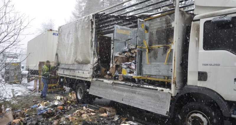 Der aus Kassel stammende Gliederzug hatte Pakete im Auftrag von DHL geladen. Kurz bevor der LKW den höchsten Punkt an der Steigung in Richtung Löhlbach passierte, verlor dieser nach ersten Erkenntnissen zunächst Betriebsstoffe. Aus der daraus resultierenden Überhitzung des Motors gerieten zunächst der Motorraum, dann das Führerhaus und letztendlich auch Teile der Ladung in Brand. Der 59-jährige polnische LKW-Fahrer stoppte seinen Laster umgehend, konnte aber ein übergreifen der Flammen auf die Ladung nicht verhindern. Der Mann blieb glücklicherweise unverletzt. Rund 25 Einsatzkräfte der Wehren aus Haina, Frankenau, Löhlbach und Bad Wildungen waren vor Ort im Einsatz. Die Bundesstraße war für rund zwei Stunden voll gesperrt. (mpu)