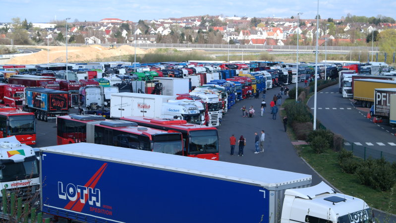 Alleine aus Hamburg waren 60 LKW angereist, ein weiterer großer Teil aus Österreich. Insgesamt standen am Nachmittag rund 300 LKWs auf dem Lohfeldener Rüssel. Insgesamt wurden 200 LKW Modelle gefertigt die zum Verkauf am Samstag und Sonntag zur Verfügung stehen. Der Erlös geht ebenfalls ohne Abzug an die Kinder Krebshilfe. Ein Unternehmer aus Hamburg stellte sofort einen Auflieger zur Verfügung, der wie in der Fotostrecke zu sehen ist beschriftet wurde und die nächsten acht Jahre auf den Landstrassen unterwegs ist. Am Abend fand eine Waschhallenparty mit drei Schlagersängern und eine Lichtershow statt.