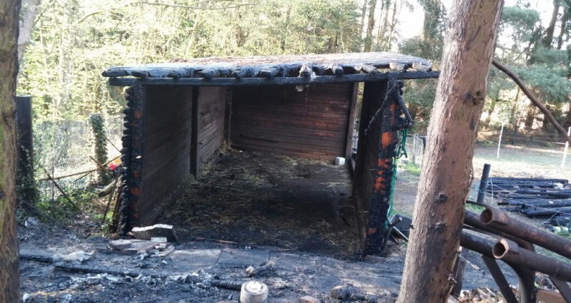 Mehrere Anrufer bestätigten zwar eine starke Rauchentwicklung, doch die genaue Örtlichkeit war ihnen nicht bekannt. Um an die Einsatzstelle heran zu kommen, mussten die Brandschützer zunächst einen steilen Hang hinauf klettern. Kurz darauf war die korrekte Brandstelle lokalisiert und die Löschfahrzeuge fuhren in die Straße „Hinter dem neuen Kirchhof“. Schnell stellte sich heraus, das ein Teil vom Pferdeunterstand im Vollbrand stand und bereits auf Bäume eines angrenzenden Waldgebietes übergriffen hatte. Pferde befanden sich zum Glück nicht im Unterstand. Zum Einsatz kam die Feuerwehr Kaufungen mit insgesamt 17 Einsatzkräften. Wie es zu dem Feuer kommen konnte ist derzeit noch völlig unklar. Nach Angaben des Eigentümers wird der Sachschaden auf rund 1500.- Euro geschätzt.