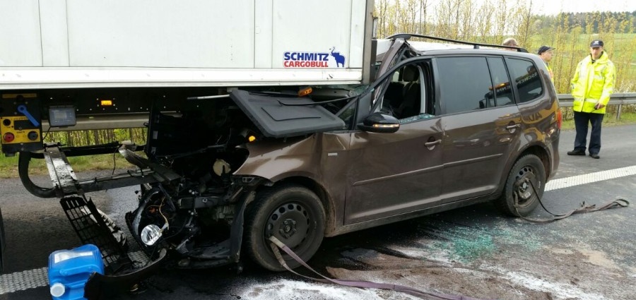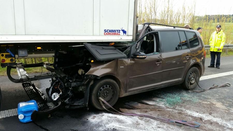 Im Fahrzeug befand sich eine Urlauber Familie aus Lachendorf im Landkreis Celle. Der Fahrer wurde nur leicht verletzt und konnte am Mittag schon wieder aus dem Krankenhaus entlassen werden. Während sich die 34-jährige Ehefrau mit Ihren drei Kindern, zwei Mädchen 11 und 1 1/2 Jahre und dem 4-jährige Sohn selbst aus der Fahrzeug befreien konnte, musste der im Fahrzeug eingeschlossene Mann von der Feuerwehr befreit werden. Der 56-jährige LKW Fahrer war sofort zur Stelle und versorgte die zum Glück alle nur leicht verletzen Personen an der Unfallstelle.