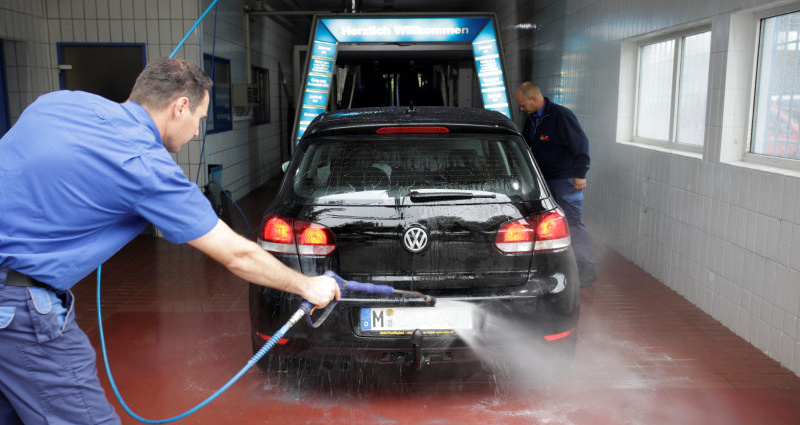 4. Richtig sauber wird das Auto durch die Vorwäsche mit dem Dampfstrahler: Hier haben die Waschstraßen einen Vorteil vor Portalanlagen, denn dort werden die Fahrzeuge grundsätzlich manuell mit einer Hochdrucklanze eingesprüht. Das säubert die Problemstellen, an denen Waschanlagen oft scheitern: Rückspiegel, Windschutzscheibe und Räder.