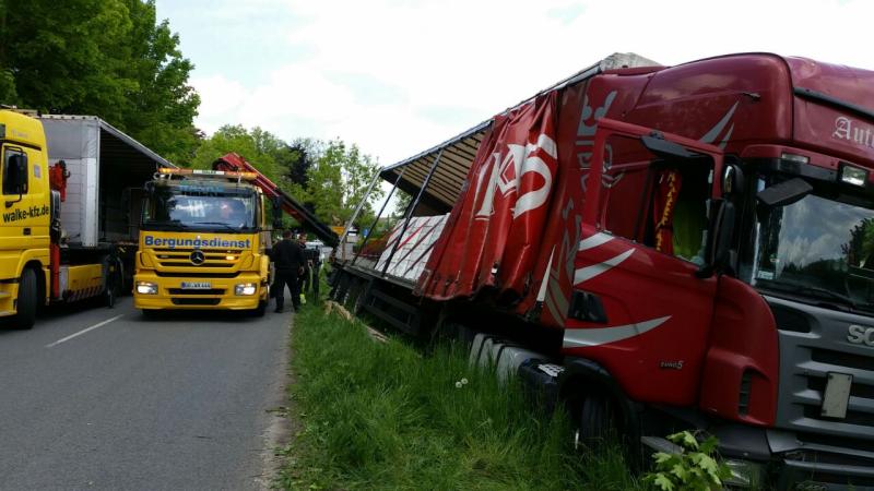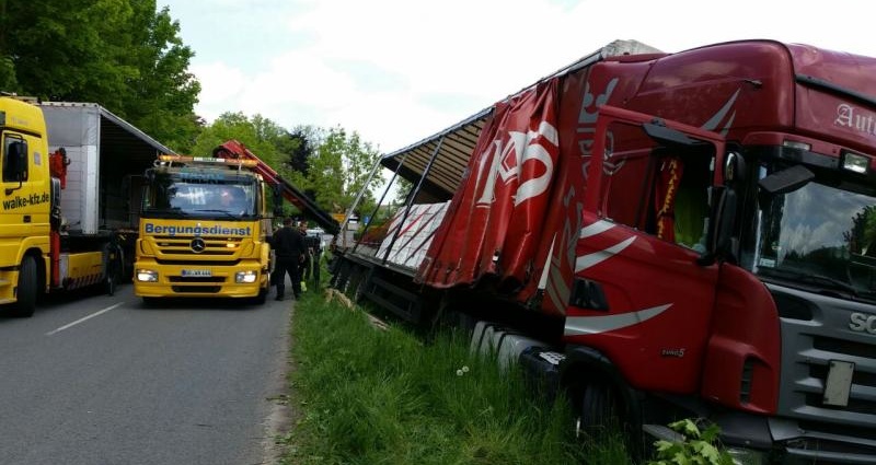 Der Mann wurde bei dem Unfall so schwer verletzt, dass er mit dem Rettungshubschrauber in ein Göttinger Krankenhaus geflogen werden musste. Die L3238 dient hier als Umgehungsstrasse für Schwertransporte mit dem Ziel Industriegebiet. Der verunglückte LKW hatte 20 Tonnen Papier geladen und muss jetzt zur endgültigen Bergung aufwendig umgeladen werden. Aus diesem Grund war die Strasse bis gegen 14 Uhr voll gesperrt.