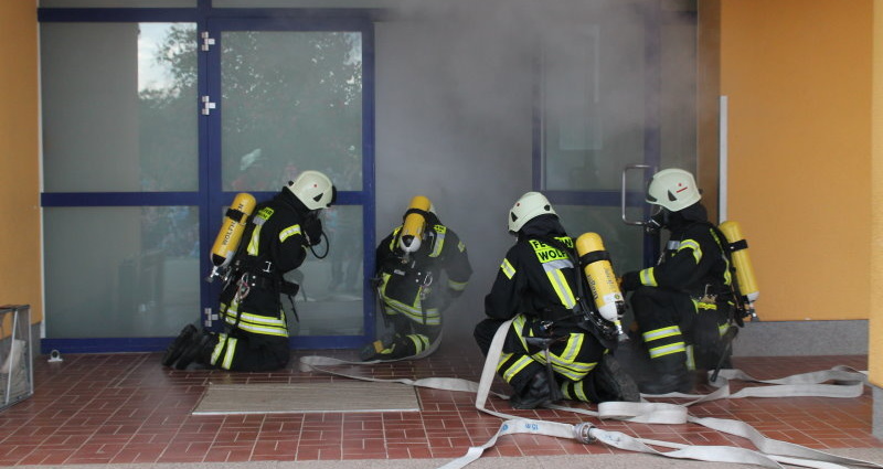 Mit dem Einsatzstichwort „Brand in Gebäude“ rückte die Feuerwehr Wolfhagen, DRK sowie das THW zur Einsatzstelle aus. Es waren mehrere verletzte Personen gemeldet, was eine sofortige Personensuche auslöste. Das DRK sorgte sofort nach dem Eintreffen für den Aufbau eines Sanitätszeltes, das THW stellte eine Schnell-Einsatz-Gerüst auf und die Feuerwehr brachte die Drehleiter in Stellung. Sehr schnell wurden die Verletzten hauptsächlich Schüler aus dem Gebäude gerettet und zur weiteren Versorgung an die Rettungskräfte übergeben. Das ganze Szenario wurde von Thomas Treschhaus von der Feuerwehr Wolfhagen kommentiert.