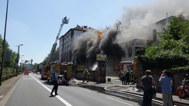 In dem Gebäude wurde nach ersten Informationen an Fahrzeugen gearbeitet, sodass die Feuerwehr davon ausgehen musste, dass sich auch Gefahrstoffe wie Gasflaschen und Treibstoffe darin befinden mussten. Zunächst wurden in einem angrenzende Wohnhaus mit fünf Stockwerken sicherheitshalber alle Bewohner evakuiert. In Brandgebäude kam es zeitweise zu Verpuffungen. Diverse Gasflaschen wurden ins Freie gebracht und durch Wasser gekühlt. Da das Gelände sehr unübersichtlich war, konnten die Männer und Frauen der Feuerwehr den Brandherd nicht sofort lokalisieren. Gegen 15.30 Uhr kam dann die erlösende Meldung „Feuer aus“. Mit Nachlöscharbeiten wird die Feuerwehr jedoch noch bis in die Nacht beschäftigt sein. Wie es zu dem Brand kommen konnte ist derzeit noch völlig unklar. Die Kripo hat noch am Nachmittag die Ermittlungen aufgenommen. Zum Einsatz kamen die Feuerwehren Weisenau, Laubenheim, Hechtsheim und Drais aus Mainz mit insgesamt 60 Einsatzkräften.