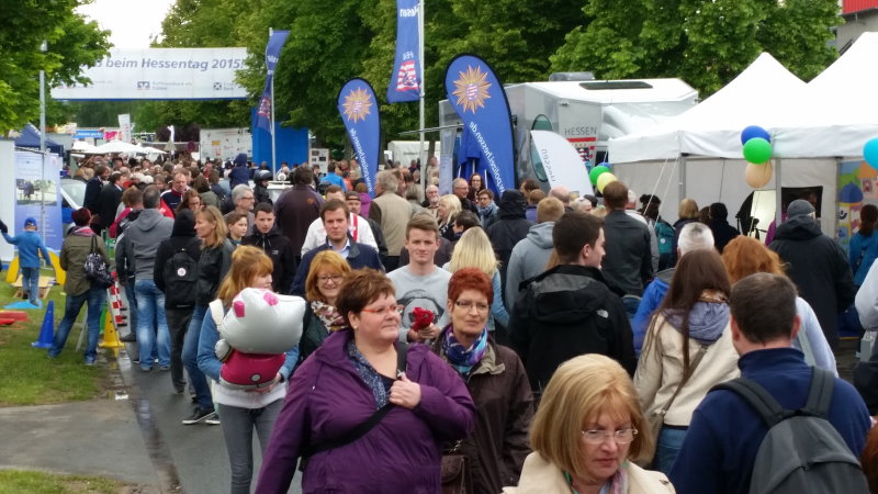 „Der große Festzug umfast 133 Zugnummern, die aus 139 Gruppen der Landkreise, Städte und Gemeinden mit vielen Vereinen und Initiativen bestehen. Zu den Gruppen gehören unter anderem 61 Motivwagen, 38 Fußgruppen, 23 Musikgruppen, 17 Trachtengruppen, 20 Pferde und acht Ziegen“, so Staatsminister Axel Wintermeyer. Der Abschluss des Festzuges ist ein Ausblick auf die Hessentagsstadt 2016 Heborn, vertreten durch eine Kutsche mit dem Hessentagspaar Janina Till und Cetin Celik. Der Bürgermeister von Hofgeismar, Markus Mannsbarth, wird nach dem Festzug seinem Heborner Kolllegen Hans Benner die ‚Hessentags-Fahne‘ überreichen. „Dieses Spektakel sollte sich niemand entgehen lassen“, sagte der Chef der Staatskanzlei. „Wer seine Fahrt nach Hofgeismar jetzt plant oder sich spontan dazu entscheidet, reist am besten mit der Bahn an: So reisen Sie bequem, kommen entspannt an und können unbeschwert den großen Festzug genießen.“
