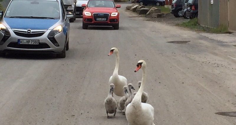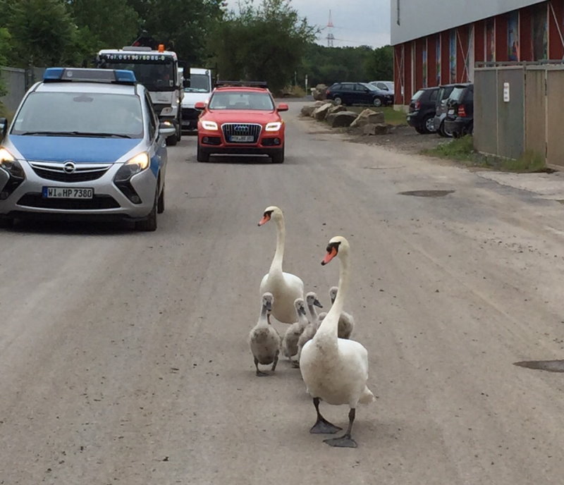 Hattersheim – Am Freitagmorgen meldeten mehrere besorgte Anwohner eine Schwanenfamilie im Hattersheimer Stadtteil Okriftel. Die Tiere wollten offenbar die Rheinstraße überqueren, wurden jedoch wegen des starken Verkehrs immer wieder gestoppt.