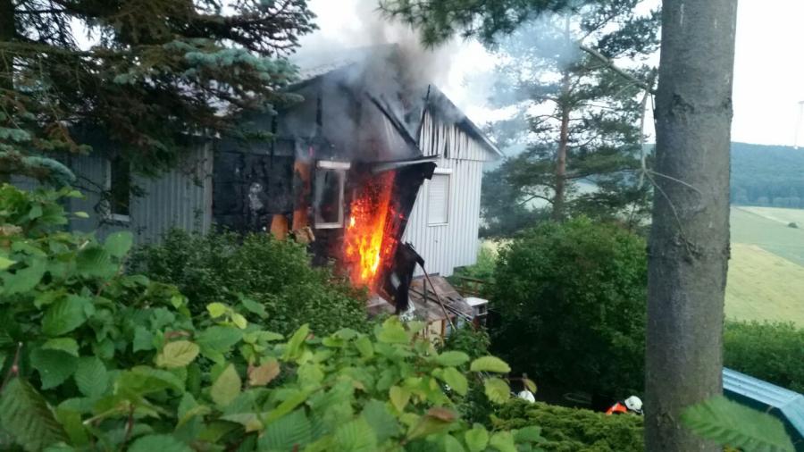 Überall waren kleine Flammen aus dem Gebäude zu sehen. Aktuell ist das Feuer unter Kontrolle, jedoch sind noch umfangreiche Löschmaßnahmen im Gange. Um alle Glutnester ausfindig zu machen, musste die komplette Außenverkleidung des Hauses entfernt werden. Wie es zu dem Brand kommen konnte, ist derzeit noch völlig unklar. Verletzt wurde bei dem Brand zum Glück niemand. Die Polizei konnte mittlerweile die Eigentümer ausfindig machen, die auch bereits an der Einsatzstelle eingetroffen sind. Die Bewohner befanden sich bei Brandausbruch in Kassel im Schwimmbad. Es wurde eine Wasserversorgung vom etwa 500 Meter entfernten Freibad Niederelsungen aufgebaut. Zum Einsatz kamen die Feuerwehren Wolfhagen, Breuna, Bründersen, Nothfelden, Weningenhasungen sowie der Atemschutzzug der Berufsfeuerwehr Kassel mit insgesamt 89 Einsatzkräften. Nach ersten Einschätzungen hat der Brand einen Totalschaden des Hauses verursacht. Der Sachschaden wird auf rund 150.000 Euro geschätzt.