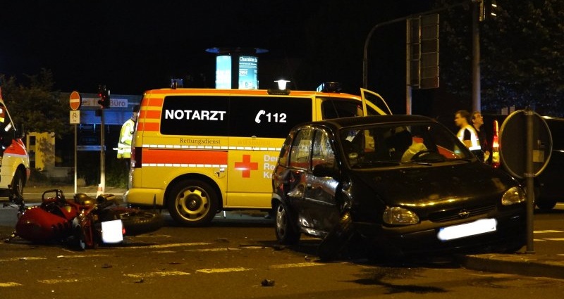 Wiesbaden – Am späten Mittwochabend kam es gegen 21.35 Uhr zu einem folgeschweren Unfall auf der Kreuzung Konrad-Adenauer-Ring/Biebricher Allee. Nach Zeugenaussagen befuhr ein 22-jähriger Motorradfahrer die Biebricher Allee aus Richtung Innenstadt in Richtung Biebrich.