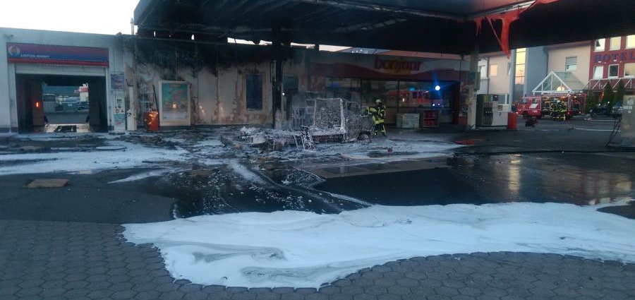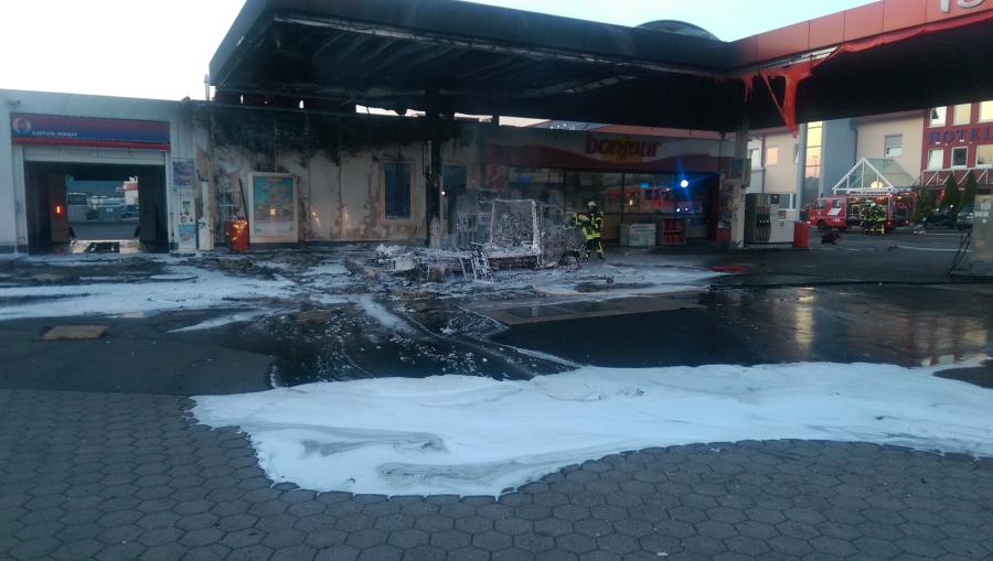 Nach Informationen der Feuerwehr gab es plötzlich eine Stichflamme aus dem Kühlschrank und nur wenig später brannte das Wohnmobil bereits in voller Ausdehnung. Löschversuche durch den Fahrzeughalter schlugen fehl. Meterhoch schlugen die Flammen unter das Dach der Tankstelle und griffen sofort auf die Gebäudeverkleidung über. Die Verkäuferin der Tankstelle reagierte so, wie sie es gelernt hatte. Tankstelle stromlos machen und das Gebäude verlassen. Das Wohnmobil war zum Zeitpunkt des Feuers das einzige Fahrzeug an der Tankstelle. Zur Sicherheit überprüften die ersten eingetroffenen Feuerwehrleute noch einmal den Verkaufsraum, während das Großtanklöschfahrzeug in Stellung gebracht wurde und den ersten Schaumangriff über den Dachmonitor vornahm. Bereits nach wenigen Minuten war das Feuer unter Kontrolle jedoch vom Aufbau und dem Inhalt des Wohnmobils war nichts mehr übrig. Auch an der Gebäudeverkleidung und am Dach der Tankstelle entstand erheblicher Sachschaden. Zur Stunde laufen noch kleinere Nachlöscharbeiten, wobei unter der Verkleidung geprüft werden muss, ob sich dort noch Brandnester befinden. Die Feuerwehr aus Bad Hersfeld sowie die umliegenden Ortsteile waren mit über 40 Einsatzkräften vor Ort. Die Kripo Bad Hersfeld hat die Ermittlungen aufgenommen. Nach Angaben der Polizei handelt es sich um einen Schaden in Millionenhöhe.