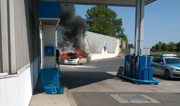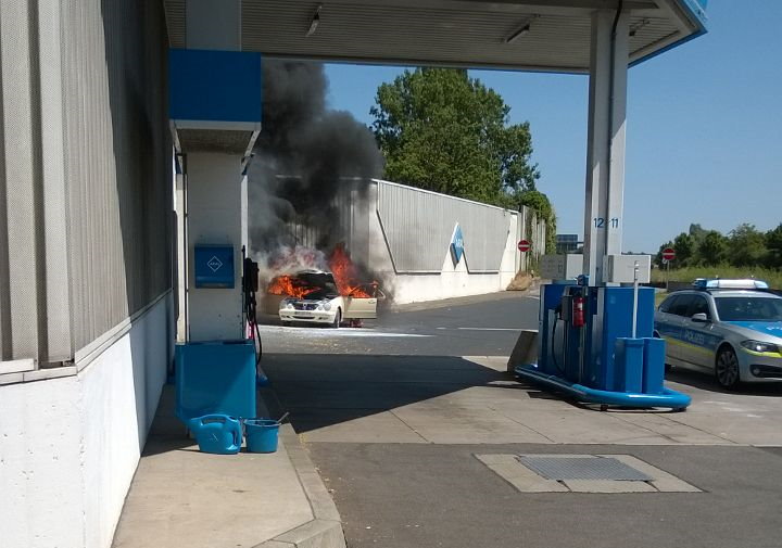 Wiesbaden – Am Montag gegen 13 Uhr wurde ein PKW-Brand auf der Rastanlage T&R Erbenheim an der A 66 gemeldet. Als die Beamten der Autobahnpolizei auf der Tankstelle eintrafen, stand der Wagen, der sich als Taxi entpuppte, bereits in Flammen.