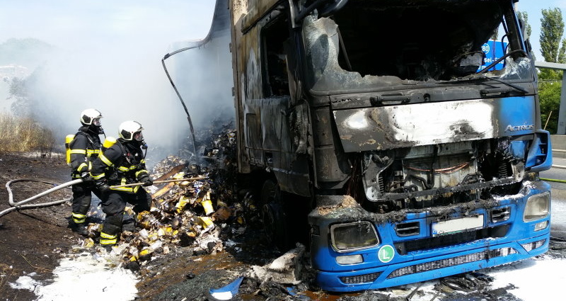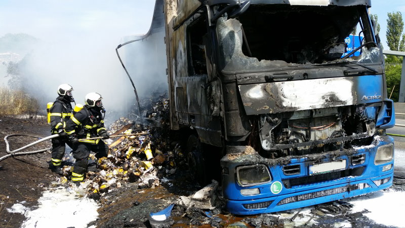Auf Grund der starken Brand- und Hitzeentwicklung sowie offensichtlich umher fliegende Teile, brannte auch die angrenzende Böschung rund 500 Meter vom LKW entfernt.  Die Wasserversorgung wurde zunächst über die von der Feuerwehr eingesetzten Tanklöschfahrzeuge übernommen, anschließend über die angrenzende Gemeinde Fuldabrück. Insgesamt waren rund 50 Feuerwehrkräfte im Einsatz.  Zur Unterstützung der Berufsfeuerwehr Kassel wurden die Feuerwehren aus Melsungen und Fuldabrück hinzu alarmiert, die sich dann um den Böschungsbrand kümmerten. Nach ersten Informationen der Polizei könnten überhitze Bremsen dafür gesorgt haben, dass die Reifen des LKW angefangen haben zu brennen. Der 56-jährige Fahrer konnte sich rechtzeitig in Sicherheit bringen und wurde nicht verletzt.   Umfangreiche Nachlöscharbeiten werden noch für eine Sperrung bis in die Abendstunden sorgen. Ob danach die Fahrbahn wieder für den verkehr frei gegeben werden kann, hängt davon ab, in wie weit die Fahrbahndecke beschädigt wurde. Über die Höhe des Sachschadens konnte die Polizei noch keine Angaben machen, jedoch wurde der LKW bei dem Brand komplett zerstört.