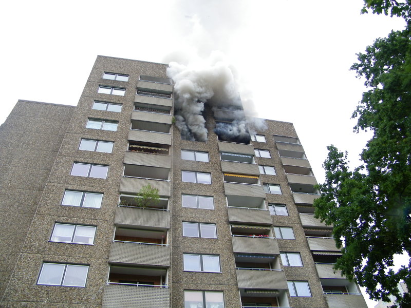 Weitere Notrufe gingen in der Leitstelle ein. Bei Ankunft der Feuerwehr waren schon Fensterscheiben geborsten, Flammen schlugen aus den Fenstern auf der Rückseite des Gebäudes. Zunächst war nicht klar, ob sich noch Personen in der betroffenen Wohnung aufhielten, so dass mit einem Trupp und Atemschutz zur Menschenrettung in die Brandwohnung vorgangen wurde. Glücklicherweise war der Bewohner nicht in seiner Wohnung. Er meldete sich während des Einsatzes bei den Einsatzkräften. Die eingeleiteten Löschmaßnahmen zeigten schnell Erfolg, dennoch ist die Wohnung durch den Brand völlig zerstört. Da nicht auszuschließen war, dass Brandrauch auch benachbarte Wohnungen in Mitleidenschaft gezogen haben, wurden diese von der Feuerwehr kontrolliert. Eine 85-Jährige Bewohnerin aus dem 10.OG wurde mit dem Verdacht auf eine Rauchgasvergiftung ins Krankenhaus eingeliefertt. Eine weitere Wohnung wurde durch Löschwasser in Mitleidenschaft gezogen. Im Einsatz waren neben der Feuerwehr Kassel, der Arbeiter-Samariter-Bund (ASB) mit einem Notarzt sowie die Polizei. Der Einsatz der Feuerwehr war gegen 19 Uhr beendet. Die Kriminalpolizei hat die Ermittlungen der Brandursache aufgenommen. Der Sachschaden wird von der Feuerwehr auf 100.000 Euro geschätzt.
