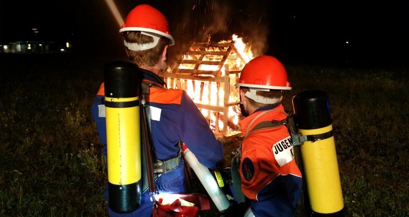 Hierzu gehörten die technische Hilfeleistung, Brandeinsätze, Abstreuen einer Ölspur, Türöffnung, oder auch ein Unfall mit eingeklemmter Person. Auf dem Festplatz in Kaufungen hatte die Jugendfeuerwehr aus Paletten ein Gebäude nachgebildet. Hier kam es gegen 22.30 Uhr zu einem Brand, wobei eine Person noch im Haus vermisst wurde. Der Ablauf war klar strukturiert. Ein Feuerwehrmann, der sich als Anwohner ausgab, rief in der Jugendleitstelle an und meldete einen Brand mit dem Hinweis, sein Frau befindet sich noch im Gebäude. Die Jugendlichen mussten bei dieser Übung mit Rücksicht auf das Alter alle Einsätze selbst abarbeiten, koordinieren, sowie die Zentrale und den Einsatz Leitwagen besetzten. Dieser Übungstag wird von den Jugendlichen sehr gut angenommen. Feuerwehr Profis überwachten den gesamten Ablauf und standen ständig mit Rat und Tat zu Seite.