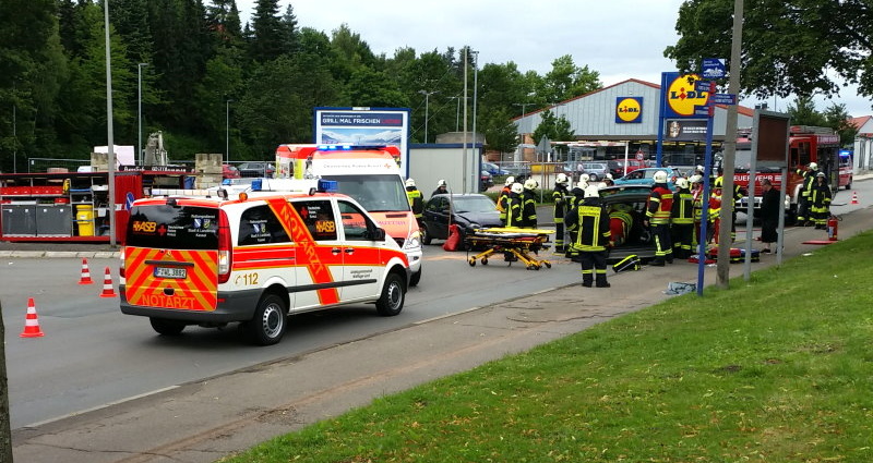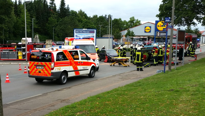 Im Kreuzungsbereich kam es dann zu einem Zusammenstoß mit einem zweiten PKW der durch einen 62-jährigen Mann aus Wolfhagen gelenkt wurde. Eine 40-jährige Frau, die sich in dem mit vier Personen besetzten Fahrzeug befand wurde schwer eingeklemmt und musste von der Feuerwehr mit hydraulischem Rettungsgerät befreit werden. Der 62-jährige am Unfall beteiligte Mann wurde nicht verletzt. Während der Rettungsmaßnahmen musste die Strasse komplett gesperrt werden.