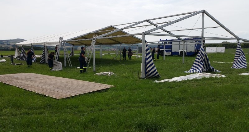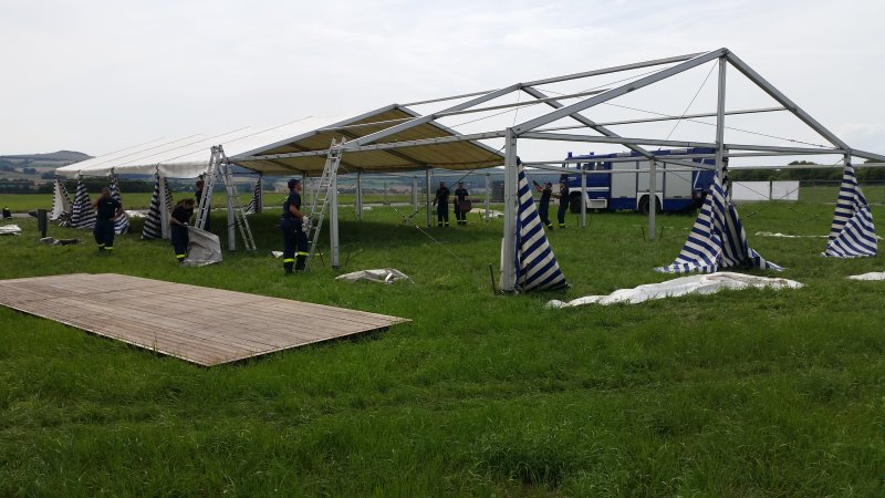 Bis die Zeltstadt komplett fertig ist, sind 48 Stunden eingeplant und sollte somit am Sonntag gegen 5 Uhr fertig sein.