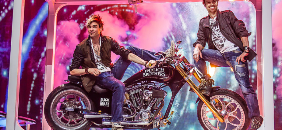 Was früher der Hase aus dem Zylinder war, ist heute die schwergewichtige Harley, mit der die Ehrlich Brothers aus einem überdimensionalen iPad donnern. Mit ihrer sensationellen Show „Magie ‐ Träume erleben“ haben Andreas und Chris Ehrlich die Zauberei in ein neues Zeitalter geführt und generationsübergreifend für Furore gesorgt.