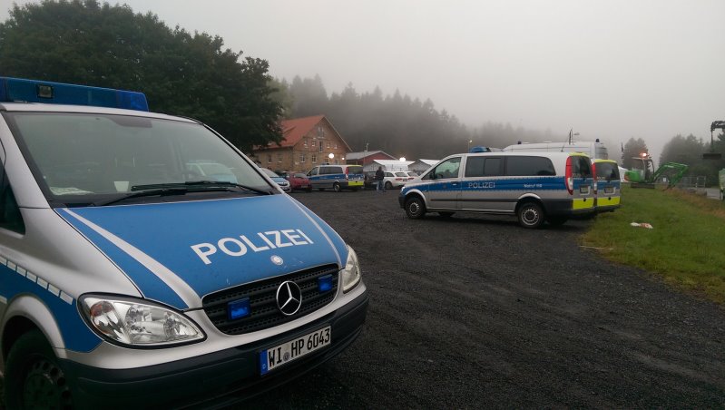 Aus dem gesamten Kreisgebiet und angrenzenden Kreisen wurden Polizeikräfte zusammen gezogen, um mögliche Unruhen sofort unterdrücken zu können. Gegen 09.30 Uhr wollten ca. 100 – 150 Bewohner das Zeltlager verlassen und versammelten sich auf der Straße. Ein Vertreter des Regierungspräsidiums soll aber den Bewohner erklärt haben, dass es im Moment keine Möglichkeit gibt, die Bewohner in Festen Gebäuden unterzubringen. Die Bewohner selbst äusserten sich relativ unbeholfen und verständnislos. „Ihr habt uns doch nach Deutschland gerufen“ merkten aber auch, dass sie wohl auf die Schönrederei von den Schleusern reingefallen sind. Der verstorbene Mann aus Syrien wird am Tage noch zur Obduktion der Gerichtsmedizin zugeführt. Für seinen nun alleine im Zeltlager befindlichen Sohn (12) ist ein Angehöriger aus Bremen unterwegs, um das Kind zunächst einmal vorübergehend in seine Obhut zu nehmen. Die Bewohner waren ruhig und nicht aggressiv. Der Todesfall hat aber deutliche Spuren bei den Flüchtlingen hinterlassen.