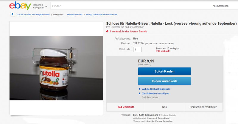 Kinder werden es künftig schwer haben Ihr Brot mit dem beliebten „Nutella“ selbst zu schmieren. Für 9,99 Euro gibt es von Erfinder Daniel Schobloch eine Kindersicherung für das Nutella Glas. Über Ebay und Facebook hatte es seine Erfindung angeboten.