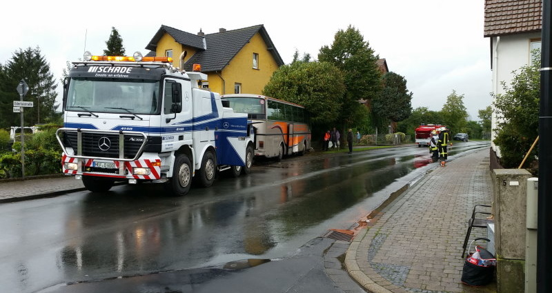 Hauseigentümerin Diana Mette war zur Unfallzeit an der Arbeit und bekam die Bilder vom Nachbarn auf ihr Handy geschickt. Erst als Sie Zuhause ankam sah sie, das, das Haus nicht betroffen ist. Wie Sie gegenüber Hessennews.TV sagte, hat sie schon immer damit gerechnet hat, dass es irgendwann einmal zu einem Unfall kommen wird. Seit einiger Zeit kämpft Frau Mette das eine Ampel oder Blumenkästen auf der Hauptstraße gestellt werden. Nachts fahren die LKW mit hoher Geschwindigkeit durch den kleinen Ort. Sie hofft, dass der Unfall jetzt einiges ändern wird, bevor es zu einem noch viel schlimmeren Unfall kommen wird. Die 35 Insassen des Reisebusses aus Bebra die gerade auf dem Weg zum Edersee waren wurden bei dem Unfall nicht verletzt. Auch der Busfahrer kam mit dem Schrecken davon. Die Unfallfahrerin wurde so schwer verletzt, dass Sie nach einer notärztlichen Erstversorgung an der Unfallstelle in ein Krankenhaus eingeliefert werden musste. Nach Informationen der Polizei wird der Sachschaden auf rund 25000 Euro geschätzt.