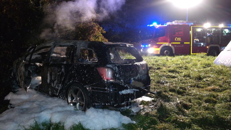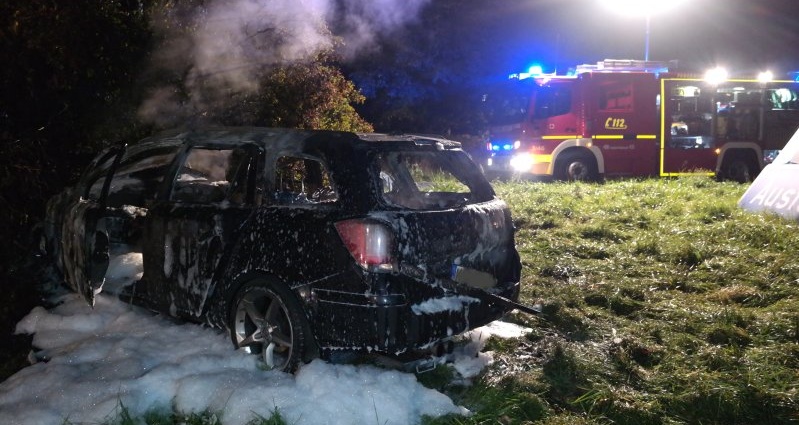 Infolge des Unfalls ging das Fahrzeug in Flammen auf und brannte komplett aus. Der Fahrer wurde beim Eintreffen der Polizei schwer verletzt neben seinem Fahrzeug liegend aufgefunden. Ob er aus dem Fahrzeug geschleudert, oder von Ersthelfern befreit wurde, ist derzeit noch nicht geklärt. Er wurde nach einer ärztlichen Erstversorgung an der Unfallstelle in ein Krankenhaus eingeliefert. Der Fahrer war offensichtlich zur Zeit des Unfalls nicht alleine im Fahrzeug, denn den Beifahrer fand man leicht verletzt rund einen Kilometer entfernt in der Hunsrückstraße in Baunatal. Warum er sich vom Fahrzeug entfernt hatte ist derzeit noch völlig unklar. Auch er wurde in ein Krankenhaus eingeliefert. Beim Eintreffen der Feuerwehr stand das Fahrzeug bereits im Vollbrand. Das Feuer war unter Einsatz von Schaummittel schnell unter Kontrolle. Während der Löscharbeiten musste die A49 in Fahrtrichtung Marburg komplett gesperrt werden. Zum Einsatz kam neben Rettungsdienst und Polizei die Feuerwehr Baunatal mit insgesamt 40 Einsatzkräften. hn/we