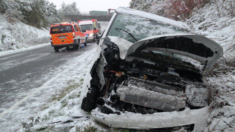Im Schneetreiben kam der Bus in einer lang gezogenen Rechtskurve nach links von der Fahrbahn ab und nahm dabei ein größeres Verkehrsschild mit. Beim Eintreffen der Feuerwehr war der Fahrer bereits aus dem PKW heraus und dem Rettungsdienst übergeben. Nach einer Erstversorgung an der Unfallstelle wurde der Fahrer in ein Krankenhaus eingeliefert. Im Einsatz war die Feuerwehr Wolfhagen, Bründersen und Istha. Die Bundesstraße war für rund 30 Minuten voll gesperrt.