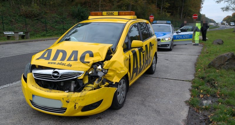 Der Fahrer hatte offensichtlich den ADAC angerufen, um so schnell wie möglich wieder weiter fahren zu können. Da das Fahrzeug noch rollfähig war, wollte man auf denn nahe gelegenen Parkplatz „Hundsberg“ ausweichen. So sicherte der „Gelbe Engel“ das Pannenfahrzeug ab und sie rollten in Richtung Parkplatz. Kurz vor dem Ziel bremste der Fahrer des Pannenfahrzeuges jedoch sehr stark ab, was der Pannenhelfer jedoch viel zu spät erkannte, es kam zu Zusammenstoß. Resultat ein Sachschaden von rund 10.000 Euro und zum Glück keine Verletzten. Warum der Fahrer sein Fahrzeug so plötzlich abbremste, blieb bis zum Schluss noch unklar. hn/we