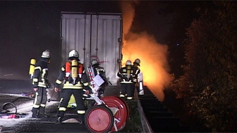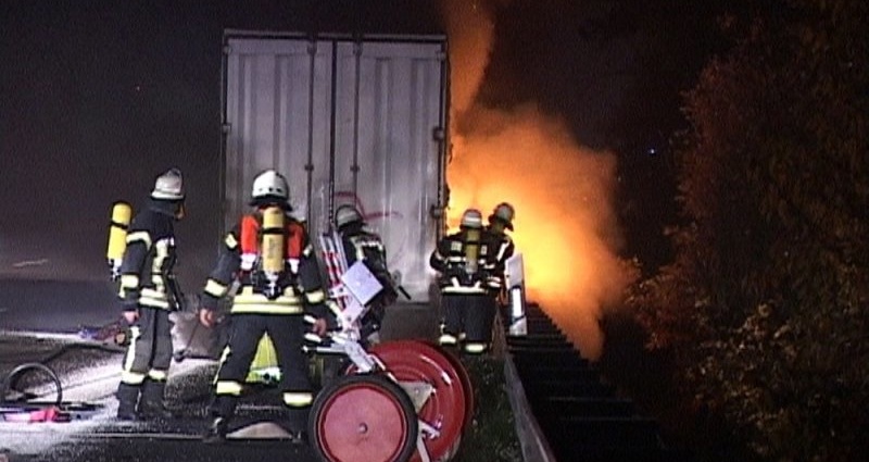 Der Fahrer hielt auf der Standspur an, koppelte die Zugmaschine ab und versuchte noch mit bordeigenen Feuerlöschern das Feuer zu löschen. Hierbei rollte der Anhänger noch rund 10 Meter trotz Absicherung durch einen Bremsklotz vorwärts. Die eintreffende Feuerwehr aus Homberg Efze sicherte den Anhänger mit einem Stahlseil und begann zeitgleich mit der Brandbekämpfung. Bereits nach 10 Minuten war das Feuer aufgrund eines massiven Löschangriffs unter Kontrolle. Zum Ablöschen der Brandnester mussten die Säcke mit der Katzenstreu vom Anhänger geworfen werden und verteilten sich auf der rechten und mittleren Fahrspur, die wegen der Löscharbeiten gesperrt werden mussten. Der Verkehr wurde über den linken Fahrstreifen an der Einsatzstelle vorbei geführt. Es bildete sich ein Stau von mehreren Kilometern. Über die Brandursache und die Höhe des Sachschadens konnten noch keine Angaben gemacht werden. Ein Bergeunternehmen ist zurzeit an der Einsatzstelle um die Katzenstreu und den Anhänger zu bergen. Nach vorsichtigen Schätzungen werden die beiden Fahrspuren vermutlich bis in den frühen Vormittag hinein gesperrt bleiben.