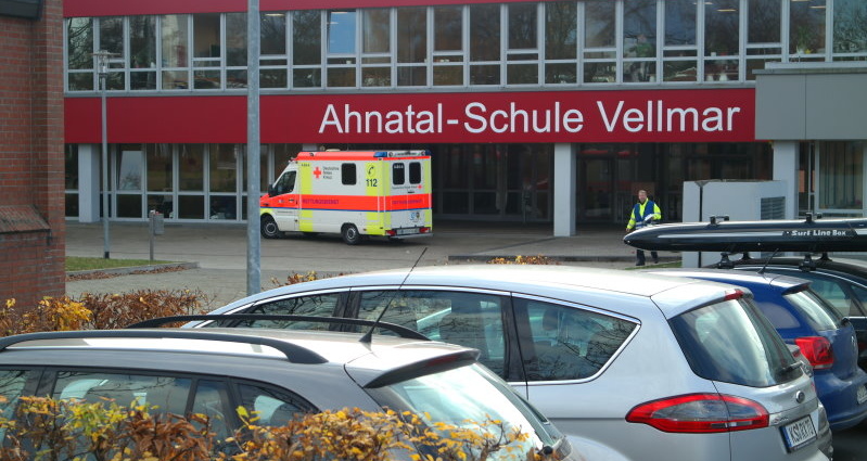 Vellmar – Am Mittwochmorgen gegen 10 Uhr kam es zum Einsatz mehrerer Rettungswagen in der Ahnatalschule in Vellmar. Vorausgegangen war die Mitteilung, dass mehrere Schüler durch Pfefferspray verletzt wurden. Daraufhin löste die Leitstelle der Feuerwehr Kassel einen„Manv 10“ * Alarm aus.