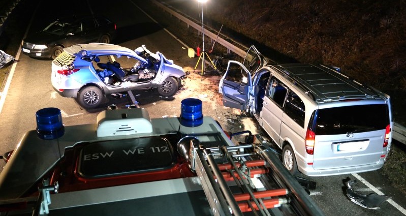 In diesem Fahrzeug befand sich ein 45-jähriger Mann aus Schemmern. Der Unfallfahrer und seine 51-jährige Beifahrerin wurden in dem Fahrzeug eingeklemmt und mussten von der Feuerwehr mit schwerem Gerät befreit werden. Der Mann wurde nach einer ärztlichen Erstversorgung an der Unfallstelle schwerstverletzt mit einem Rettungshubschrauber aus Eisenach in ein Krankenhaus eingeliefert. Für die Beifahrerin kam jede Hilfe zu spät, sie verstarb noch an der Unfallstelle. Auch der Fahrer des Kleinbusses wurde bei dem Unfall schwer verletzt in ein Krankenhaus eingeliefert. Zum Einsatz kamen neben Polizei, Notarzt und Rettungskräften auch die Feuerwehr aus Wehretal. Um die genaue Unfallursache klären zu können, wurde auch ein Gutachter in die Ermittlungen eingebunden. Während der Rettungs- und Bergungsarbeiten musste die B7 komplett gesperrt werden. Der Verkehr wurde weiträumig umgeleitet.