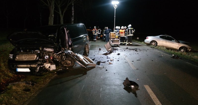 Zierenberg –  Am Heiligabend kam es gegen 19.15 Uhr zwischen Zierenberg und Habichtswald etwa in Höhe Gut Bodenhausen auf der L3220 zu einem schweren Verkehrsunfall. Ein 53-jähriger aus  Zierenberg befuhr mit seinem Fahrzeug die L 3220 von Ehlen her  kommend in Richtung Zierenberg. Kurz hinter dem Gut Bodenhausen  kam  er, aus derzeit noch ungeklärter Ursache nach links auf die  Gegenfahrbahn und stieß seitlich versetzt, frontal mit dem  entgegenkommenden VW-Bus eines 48-jährigen aus Baunatal zusammen.  Der 53-jährige, der 48-jährige sowie dessen 39-jährige Beifahrerin und ein Kind wurden bei dem Unfall schwer verletzt und mussten in ein Krankenhaus eingeliefert werden. Lebensgefahr besteht jedoch  glücklicherweise bei keinem der Beteiligten. Zum Einsatz kamen vier Rettungswagen, zwei Notärzte sowie die Feuerwehr Habichtswald und Zierenberg mit insgesamt 37 Einsatzkräften. Die Landesstraße war rund zwei Stunden voll gesperrt.