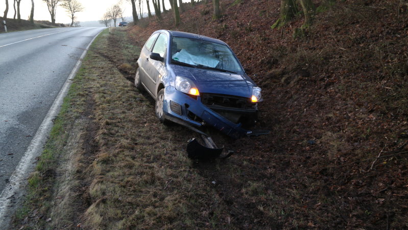 Auf der B 450 in Bad Emstal war gegen 7:30 Uhr eine 19-Jährige aus Naumburg zwischen Balhorn und Sand mit ihrem Fahrzeug ebenfalls nach rechts von der Fahrbahn abgekommen und in einem Graben zum Stehen gekommen. Die Fahrerin verletzte sich hierbei leicht.
