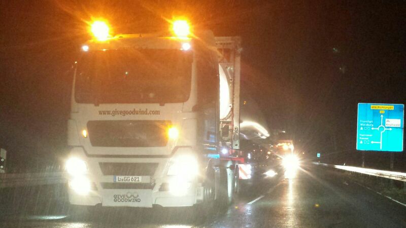 Zwei mit Windradflügel beladene LKW sowie mehrere Begleitfahrzeuge steckten kurzfristig in der Autobahnabfahrt fest, nachdem sich einer der beiden LKW festgefahren hatte. Schwierigkeiten hatten die überlangen Transporter zudem beim befahren der Bundesstraße. Hier mussten sie auf engstem Raum eine 90 Grad kehre machen, bevor es dann weiter in Richtung Hersfeld Rotenburg ging. Durch die zum Teil etwas länger dauernden Rangiermanöver, kam es im Bereich der Autobahnabfahrt zu einem leichten Rückstau.