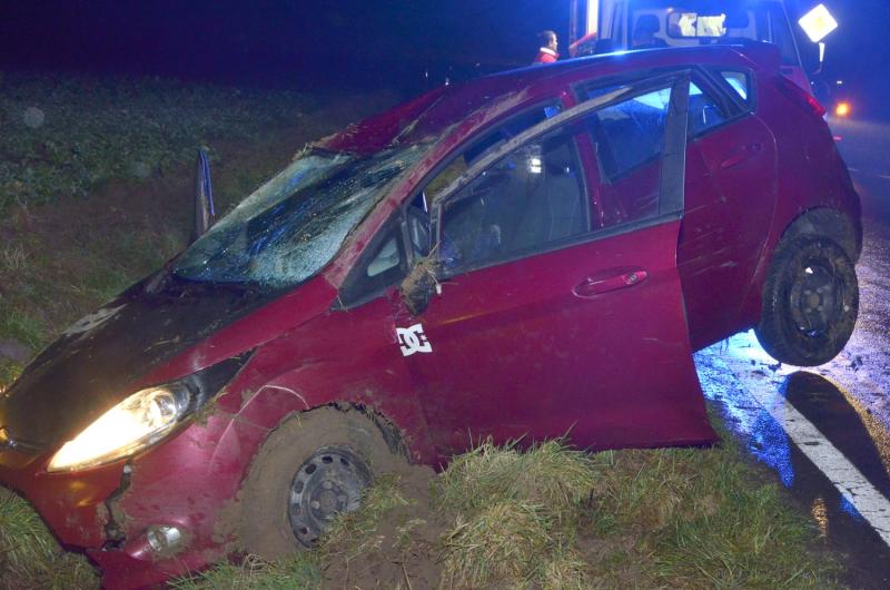 Offensichtlich unterschätzte der ortsfremde Fahrer den Bereich der Niederurffer Kuppe, so dass sein Fahrzeug ins schleudern geriet und nach rechts von der Fahrbahn abkam. Der Fiesta pflügte zunächst durch einen Wassergraben, blieb an einem Durchlass hängen, überschlug sich und kam auf den Räder im Straßengraben zum stehen. Ein zufällig vorbeikommender Rettungsassistent des Deutschen Roten Kreuzes kümmerte sich bis zum Eintreffen des Rettungsdienstes um die beiden Verletzten. Vom Notarzt versorgt wurden beide für weitere Untersuchungen in ein nahegelegenes Krankenhaus gebracht. Am Fahrzeug entstand Totalschaden. Die L 3074 war für rund 30 Minuten voll gesperrt.