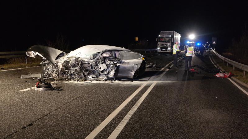 Ein 39-jähriger Porschefahrer fuhr entgegengesetzt und überholte einen in Richtung Autobahn fahrenden LKW. In einer lang gezogenen Kurve krachten beide Fahrzeuge aus bisher nicht geklärter Ursache frontal zusammen. Die Wucht war so heftig dass der Kleinwagen total zerstört wurde. Am Porsche wurde die Fahrerseite komplett eingedrückt. Trotz des schnellen Einsatzes der Rettungsdienste kam für beide Personen jede Hilfe zu spät. Im Porsche befand sich auf dem Beifahrersitz eine 30-jährige Frau die im Fahrzeug eingeschlossen war. Sie konnte von der Feuerwehr befreit und nach einer ärztlichen Erstversorgung an der Unfallstelle in ein Krankenhaus eingeliefert werden. Um die genaue Unfallursache feststellen zu können, wurde ein Gutachter in die Ermittlungen eingebunden. Während der Unfallaufnahme musste die B251 für rund vier Stunden komplett gesperrt werden, der Verkehr wurde weiträumig umgeleitet. Es kam zu erheblichen Behinderungen.
