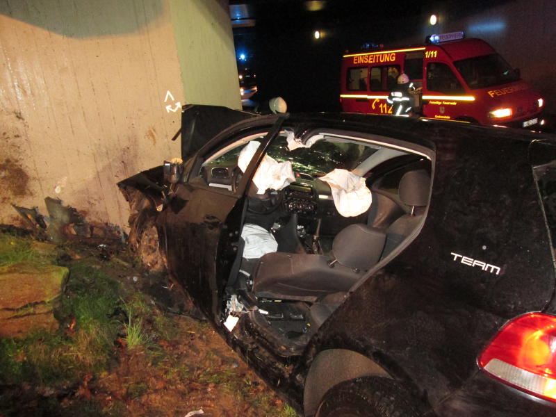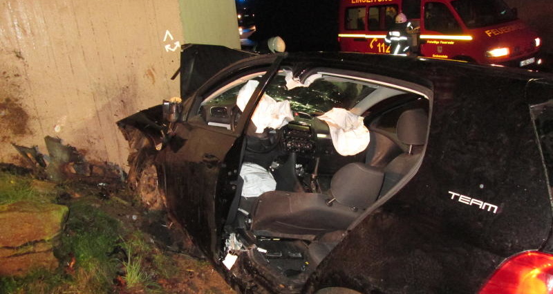 Hierbei wurde sein 20-jähriger Beifahrer aus dem Fahrzeug geschleudert. Der Fahrer wurde im Fahrzeug eingeklemmt und musste von der Feuerwehr mittels Rettungsschere freigeschnitten werden. Die beiden jungen Männer wurden schwer verletzt. Nach derzeitigem Erkenntnisstand besteht jedoch keine Lebensgefahr. Der 19-jährige Fahrer stand unter Alkoholeinfluss.