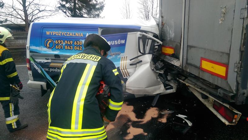 Durch die Wucht des Aufpralls drückte sich die rechte Hälfte des VW-Busses fast einen Meter unter den Auflieger und der Fahrer wurde in senem Fahrzeug eingeklemmt. Ersthelfer, die nach eigenen Angaben befürchteten, dass der Kleintransporter zu brennen beginnt, zogen den schwerstverletzten Fahrer aus dem Fahrzeugwrack und übergaben ihn an den an der Einsatzstelle eingetroffenen Rettungsdiest. Ein Rettungswagen mit Notarzt brachte den Schwerverletzten mit Verdacht auf Wirbelverletzungen in ein Krankenhaus. Eine erste Fahrzeugschau zeigte den Rettern, welch unsagbares Glück der Fahrer hatte, da der Fahrgastraum völlig eingedrückt und deformiert war. Während der Rettungs- und Bergungsarbeiten musste die A4 in Richtung Osten voll gesperrt werden. Der Verkehr wurde in Bad Hersfeld abgeleitet und über die B 62 nach Friedewald geführt. Es bildete sich ein Stau von mehreren Kilometern. Über die Höhe des Sachschadens konnten noch keine Angaben gemacht werden. Am Kleintransporter entstand wirtschaftlicher Totalschaden, der Sattelzug ist nicht mehr Fahrbereit, da durch den Unfall am Auflieger die Bremsanlage zerstört wurde.