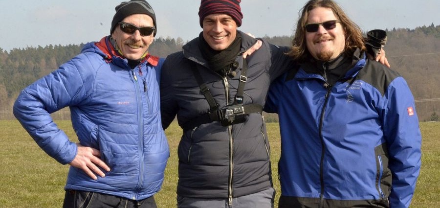 Mit von der Partie war Galileo-Extremsportler Harro Füllgrabe. Sein Name steht für Spannung, Action und unglaubliche Abenteuer. Immerhin sah der 40 Jährige bereits einer Cobra ehrfürchtig in die Augen und versuchte sie zu zähmen. Ein anderes mal campierte der Weltenbummler an einer der gefährlichsten Steilwände der Welt und nicht zuletzt sprang der Extremsportler sogar in 10000 Meter Höhe aus einem intakten Flugzeug und wagte einen sogenannten Halo-Sprung. Ganz so hoch ging es bei den Dreharbeiten in Bad Wildungen zwar nicht, dennoch gab es für den Abenteuererprobten ausreichend Adrenalinschübe. Denn innerhalb von 24 Stunden wurden dem gebürtigen Ostfriesen die Grundlagen des Motorschirmfliegens beigebracht. Angefangen mit ersten schweißtreibenden Aufziehübungen und Gleitschirmflügen am Übungshang nahe Reinhardshausen, über motorlose Windenstarts bis hin zum eigenständigen Start mit einem Motorschirm auf dem Segelfluggelände. Es hat „…alles hervorragend geklappt (…) Harro ist ein echtes Talent“, so Fluglehrer Sascha Nölle und verdeutlichte das alle Bedingungen zur Schulung, angefangen vom Wetter bis hin zur Unterstützung durch die Afs-Flugschule und dem Segelflugverein, ausgesprochen gut waren. Nur so konnte am Ende der zweitägigen Dreharbeiten das Ziel der ersten Motorschirm-Starts erzielt werden. Ein gemeinsamer Ausflug mit seinem Ausbilder und einen schönen Blick aus rund 500 Meter Höhe auf die Landschaft rund um Bad Wildungen sollte etwas entschädigen und alle Mühe vergessen lassen. Fazit von Harro Füllgrabe: „Für mich war das ein unvergessliches Erlebnis und absolut über meinen Erwartungen. Gleitschirmfliegen war ja schon immer ein heimlicher Traum von mir“.