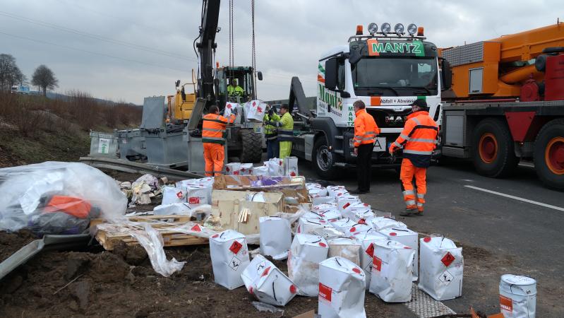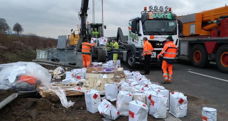 Die Frau aus Hamburg wurde mit dem Rettungswagen in ein Krankenhaus nach Northeim gebracht. Der gleichaltrige Fahrer aus dem Landkreis Harburg blieb unverletzt. Derzeitigen Ermittlungen der Autobahnpolizei Göttingen zufolge, kam der 42-Jährige vermutlich aufgrund von Unaufmerksamkeit gegen 0.45 Uhr plötzlich mit seinem Sattelzug nach rechts von der Fahrbahn ab und geriet auf den unbefestigten Teil neben dem Standstreifen. Beim Versuch gegenzulenken, schleuderte die Zugmaschine zurück auf die Fahrbahn und blieb dann quer zur Fahrtrichtung stehen. Der mit Stückgut beladene Anhänger schleuderte in den Straßengraben und kippte auf die Seite. Dabei wurde die Wechselbrücke aufgerissen und die darin befindliche Ladung, darunter auch Farben und Zusatzstoffe, fiel ebenfalls in den Graben. Die 42 Jahre alte Mitfahrerin des Brummifahrers, die zu diesem Zeitpunkt in der Schlafkoje lag, wurde in das Führerhaus geschleudert und schwer verletzt. An der Unfallstelle waren die Freiwillige Feuerwehr Gandersheim und die Gefahrguteinheit der Umweltfeuerwehr Northeim im Einsatz. Ein Experte der Unteren Wasserbehörde Northeim waren ebenfalls vor Ort. Der Sachschaden wird auf rund 150.000 Euro geschätzt. Die Autobahn konnte erst am Nachmittag komplett wieder frei gegeben werden.