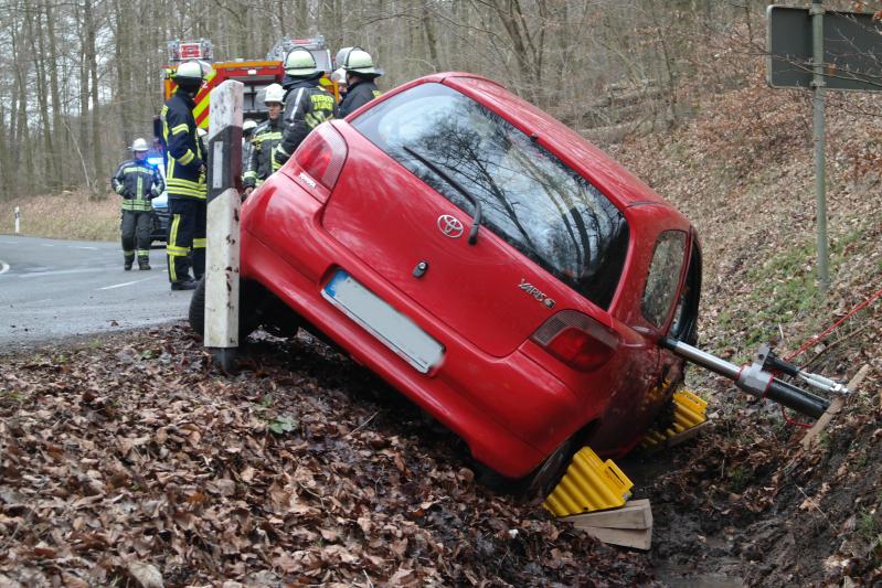Baunatal – Am Sonntagmittag etwa gegen 12.20 Uhr kam es auf der L 3219 zwischen Großenritte und Niedenstein zu einem Verkehrsunfall. Das Fahrzeug war von Großenritte kommend in Fahrtrichtung Großenritte. Aus bisher nicht geklärter Ursache verlor die Fahrerin eines Toyota in einer Linkskurve die Kontrolle über Ihr Fahrzeug und kam in einem Graben zum liegen.