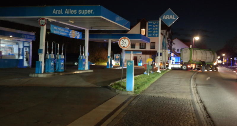 Kaufungen – Am Dienstagabend kam es an der Aral Tankstelle in Niederkaufungen in der Leipziger Straße zu einem Unfall mit einem LKW. Der Fahrer eines Silos Fahrzeuges beladen mit Speiseöl wollte auf das Tankstellen-Gelände auffahren um nach dem Weg zu fragen.