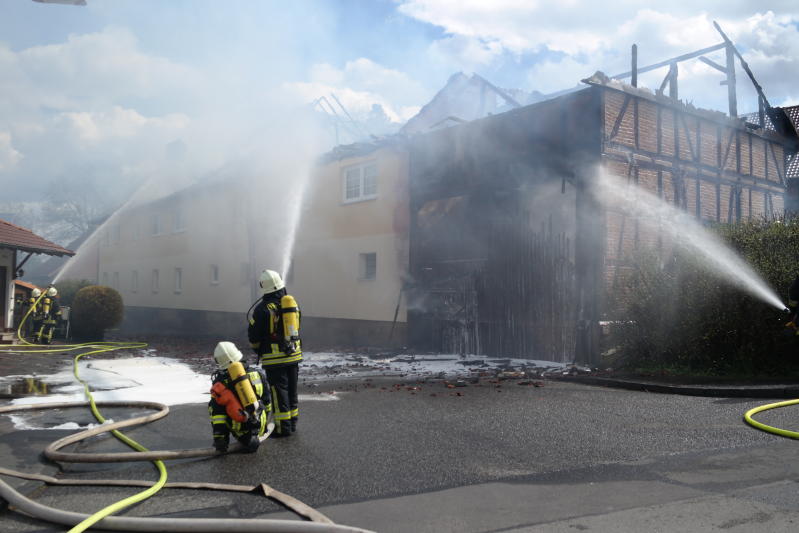 Ein benachbartes Fachwerkhaus wurde leicht beschädigt. Zur Brandausbruchszeit befanden sich keine Bewohner in dem Haus. Verletzt wurde niemand. Die Ortsdurchfahrt musste voll gesperrt werden. Im Einsatz waren die Ortsteile von Edermünde sowie die Feuerwehr aus Guxhagen, Baunatal, Gudensberg, Werkfeuerwehr von B-Braun und das DRK mit einem Versorgungs- und Betreuungszeug mit rund 100 Einsatzkräften. Die Brandursache ist unklar, die Kripo hat ihre Ermittlungen aufgenommen.