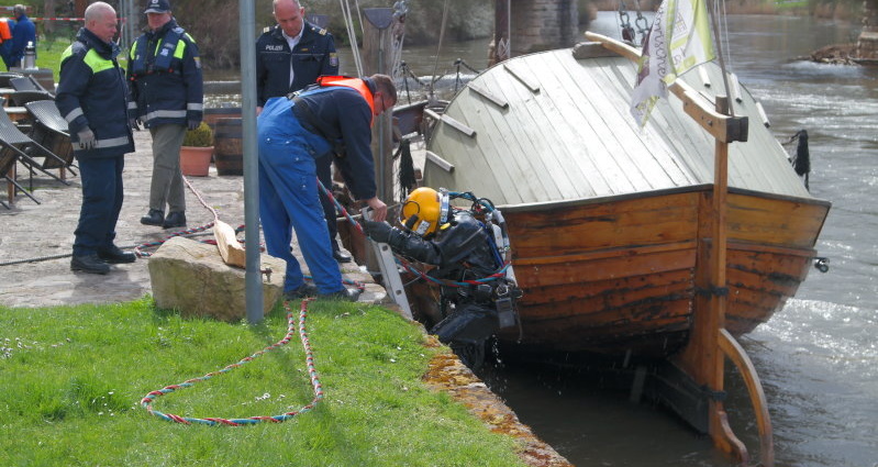 Wanfried – Nachdem der „Gegenstand“ auf dem Grund der Werra durch die Taucher als Steinplatte identifiziert werden konnte, fanden noch zwei weitere Tauchgänge der Spezialisten statt. Beide im Bereich des Stegs zur Werra.