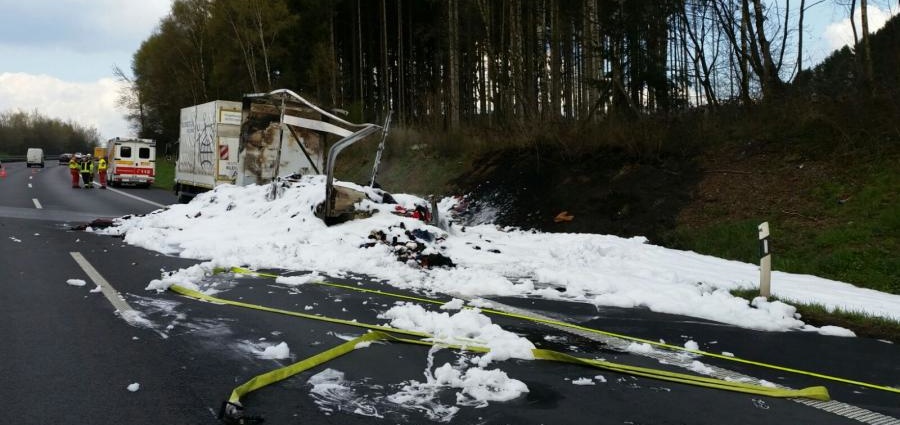 PKW Fahrer hatten den 39-jährigen Fahrer des LKW darauf aufmerksam gemacht, dass es im Bereich des Anhängers eine starke Rauchentwicklung gibt. Nachdem der Fahrer angehalten und sich die Sache angesehen hatte, ging alles ganz schnell. Innerhalb von wenigen Minuten fand das Feuer seinen Weg. Beim Eintreffen der Feuerwehr stand der Anhänger beladen mit Altkleidern im Vollbrand. Eine angrenzende Hecke hatten ebenfalls Feuer gefangen. Trotz der widrigen Umstände hatten die Einsatzkräfte den Brand u.a. mit einem Schaumteppich schnell unter Kontrolle. Der LKW Fahrer wurde nicht verletzt, er konnte sich rechtzeitig in Sicherheit bringen. Wieder einmal war es fast unmöglich für Helfer und Polizei an die Einsatzstelle zu gelangen, weil es keine Rettungsgasse gab. Nachrückende Fahrzeuge standen teilweise im Stau, weil Verkehrsteilnehmer wichtigeres zu tun hatten, als Rettungskräften Platz zu machen. Das Abschleppunternehmen und dahinter eine Polizeistreife mussten sich ebenfalls durch den Stau kämpfen und kamen so gut wie nicht voran. Ein LKW Fahrer sah es nicht ein Platz zu machen, denn er war gerade am telefonieren. Ein PKW Fahrer hatte die glorreiche Idee sich an den Konvoi aus Abschlepper und Polizei anzuhängen, um so weiter im Stau nach vorne zu kommen. An diesem Punkt jedoch griff die Polizei energisch durch. Der PKW Fahrer bekommt nun eine Anzeige wegen Behinderung der Rettungsgasse, der LKW Fahrer erhält ein Busgeld über 60.- Euro und einem Punkt in Flensburg. Auf Grund der Vollsperrung kam es zu Kilometer langen Staus die sich auch auf die Umleitungsstrecken und den Stadtverkehr Kassel auswirkten. Nach Angaben der Polizei wird der Sachschaden auf rund 50.000 Euro geschätzt.