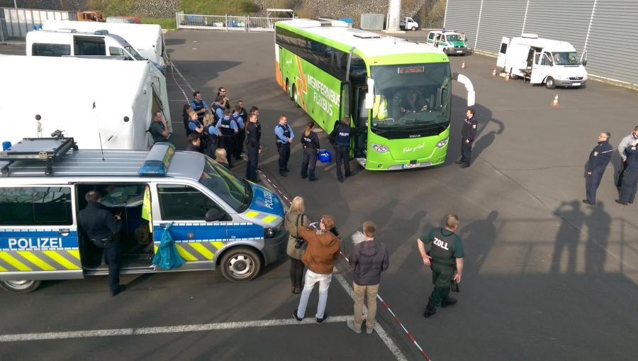 Bei der Kontrolle wurden nicht nur die Busse auf ihren Zustand untersucht, sondern auch die Busfahrer auf Einhaltung der Sozialvorschriften, sowie die Fahrgäste und ihr mitgeführtes Gepäck. Die Busse wurden von Selektierfahrzeugen aus dem fliessenden Verkehr der Autobahnen 4, 5 und 7 gezogen und zu einer Kontrollstelle auf dem Kirchheimer Friedrichsfeld (Gewerbegebiet) geführt. Jeweils eine Beamtin oder ein Beamter von den Autobahnpolizeistationen Fulda und Bad Hersfeld, die von der Bereitschaftspolizei aus Mühlheim unterstützt wurden, kontrollierten einen Fahrgast aus dem Bus. Nach einer gründlichen Personenkontrolle, bei der auch die Ausweispapiere von speziell geschulten Beamten der Kripo aus Fulda auf Echtheit geprüft wurden, führten die Beamten jeden Fahrgast mit seinem Gepäck zu einem mobilen Einsatzfahrzeug vom Zoll, wo die Gepäckstücke durchleuchtet wurden. Zwischenzeitlich wurde auch der Busfahrer auf die Einhaltung der Lenk und Ruhezeiten überprüft und der Bus nach augenscheinlicher Kontrolle durch einen DEKRA Mitarbeiter auf Mängel untersucht. Gleich zu Beginn der Kontrolle fielen zwei Fahrgäste auf, bei denen eine besondere Überprüfung notwendig wurde. Ein Fahrgast konnte sich nur durch einen Californischen Führerschein ausweisen. Eine Personalienkontrolle ergab hier, das der Kontrollierte den Führerschein aber nicht im Schengenraum benutzen darf, da er von den deutschen Behörden ein generelles Fahrverbot ausgesprochen bekommen hat. Eingezogen werden konnte der Führerschein jedoch nicht, da er zum Zeitpunkt der Kontrolle kein Fahrzeug geführt hatte. Eine weitere Person bereitete den Beamten viel Arbeit, da bei der Überprüfung zwei durch Geburtsdatum abweichende Identitäten festgestellt wurden. Durch die Kontrolle wurde die verbindliche Identität endgültig geklärt. Ein weiblicher Fahrgast musste von den Beamten belehrt werden, da sie sich ausserhalb der für sie verbindlichen Aufenthaltsbeschränkung befand. Sie wird umgehend in ihren zugewiesenen Bereich zurückreisen müssen. Ein endgültiges Ergebnis der Buskontrollen wird erst nach der Auswertung zum Freitag gegen 12 Uhr erwartet.
