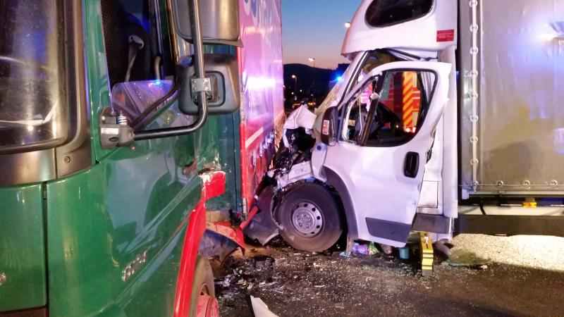 An dieser Stelle wollte ein 52-jähriger Lkw-Fahrer mit seinem Sattelzug ordnungsgemäß nach links abbiegen. Aus nicht geklärte Ursache fuhr ihm der 37-jähriger Kleintransporterfahrer frontal in die Seite. Der Mann wurde in seinem Fahrzeug so schwer eingeklemmt, dass er von der Feuerwehr mit hydraulischem Gerät befreit werden musste. Die Bergung gestaltete sich für die Rettungskräfte sehr schwierig. Es dauerte eine gute Stunde bis der Schwerverletzte befreit werden konnte. Der Mann wurde nach einer Erstversorgung an der Unfallstelle mit einem Rettungswagen in ein Krankenhaus eingeliefert. Zum Einsatz kam die Feuerwehr Baunatal mit rund 40 Einsatzkräften. Auch der Rettungshubschrauber Christoph 7 war im Einsatz, wurde aber nicht mehr benötigt. Nach Angaben der Polizei wird der Sachschaden auf rund 100.000 Euro geschätzt.