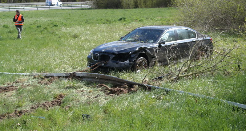 Die Polizei setze darauf hin mehrere Streifenwagen ein, die sehr schnell das Fahrzeug ausmachen konnten. Offensichtlich erkannte der Fahrer das er entdeckt wurde und setzte seine Fahrt mit Spitzengeschwindigkeiten von bis zu 250 Km/h fort. Vermutlich wollte der Fahrer dann die Autobahn an der Abfahrt Wilhelmshöhe verlassen, was ihm jedoch zum Verhängnis wurde. Auf Grund seiner hohen Geschwindigkeit bekam er die Kurve nicht, fuhr gerade aus über eine Grünfläche, überfuhr die Auffahrt zur A44 durchschlug die Leitplanke und kam dann in einem angrenzenden Gebüsch zum stehen. Polizeibeamte fanden dann den bewusstlosen Mann außerhalb des Fahrzeuges. Der Fahrer wurde bei diesem Unfall schwer verletzt und musste nach einer Erstversorgung an der Unfallstelle unter polizeilicher Bewachung in ein Krankenhaus eingeliefert werden. Wie die Polizei später mitteilte wurde das Fahrzeug in Frankreich, nahe der belgischen Grenze von seinem Eigentümer als gestohlen gemeldet. Zunächst war nicht klar, ob sich im Fahrzeug noch weitere Personen befanden. Aus diesem Grund suchte die Polizei mit einem Großaufgebot an Einsatzkräften und einem Hubschrauber das Gelände weiträumig ab. Die Polizei hatte auch eine Rundfunkwarnmeldung herausgegeben in diesem Bereich keine Anhalter mitzunehmen. Die Suche wurde aber mittlerweile ergebnislos eingestellt.