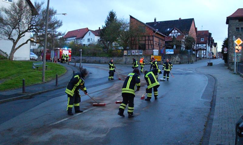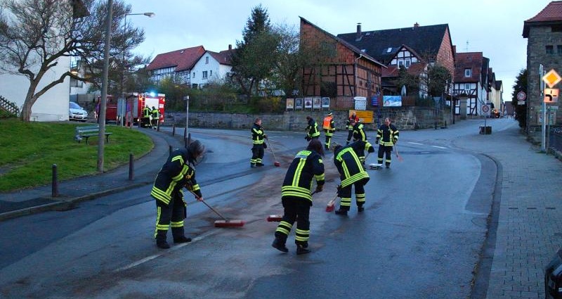 Wolfhagen – Am Mittwochabend wurde die Feuerwehr Wolfhagen um kurz nach 20 Uhr zu einer Ölspur in der Schützeberger Straße Ecke Wilhelmstraße alarmiert. Bei Ankunft wurde eine rund 150 Meter lange und 30 cm breite Ölspur festgestellt.