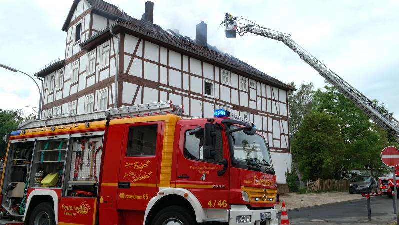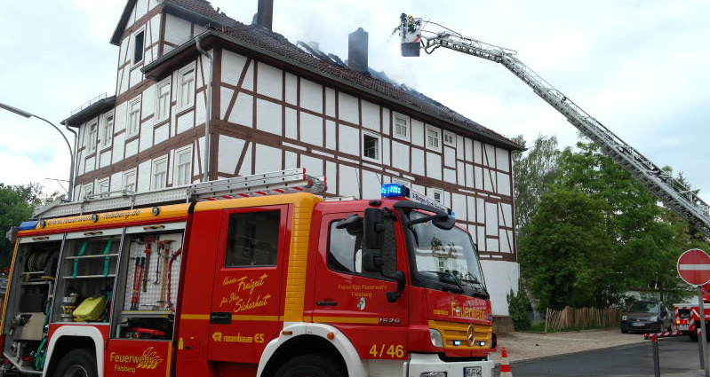 Felsberg – Gegen 15.15 Uhr wurde die Feuerwehr Felsberg (Schwalm Eder Kreis) am Freitag mit dem Alarmstichwort „Gebäudebrand“ in die Straße „Untertor“ Alarmiert. Beim Eintreffen der ersten Einsatzkräfte stand der Dachstuhl bereits im Vollbrand.