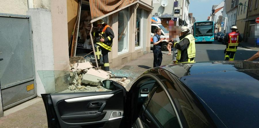 Wucht des Aufpralls in Richtung einer Hauswand geschleudert und landete schließlich in der Auslage eines Frisörgeschäftes. Da sich am Sonntag üblicherweise niemand im Geschäft befand, kam zum Glück niemand zu schaden. Eine am Unfall beteiligte Person wurde jedoch so schwer verletzt, dass sie nach einer Erstversorgung an der Unfallstelle in eine Krankenhaus eingeliefert werden musste. Die eingesetzten Kameraden der Feuerwehr sicherten die Unfallstelle und schalteten den Strom im Ladengeschäft ab. Nach ersten Schätzungen der Polizei wird der Sachschaden auf rund 45.000 Euro geschätzt.
